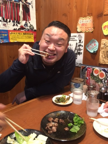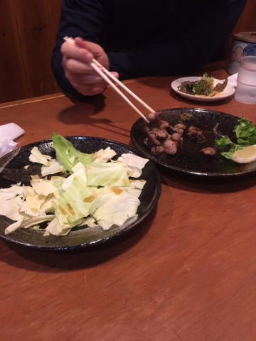 ココでは豚バラ串と地鶏の炭火焼きを食べ―の・・・