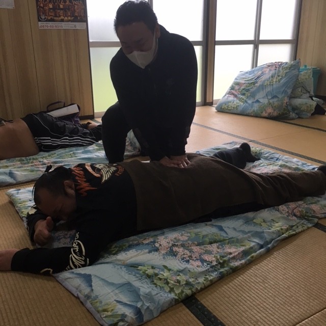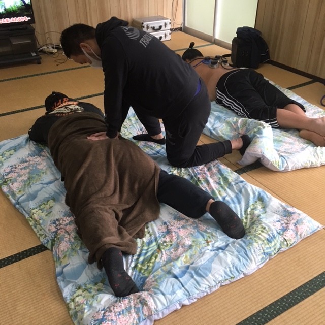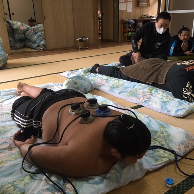 若い力士が多い中稽古後は体のケアも怠りません。なんといっても体が資本ですからね\(゜ロ\)(/ロ゜)/