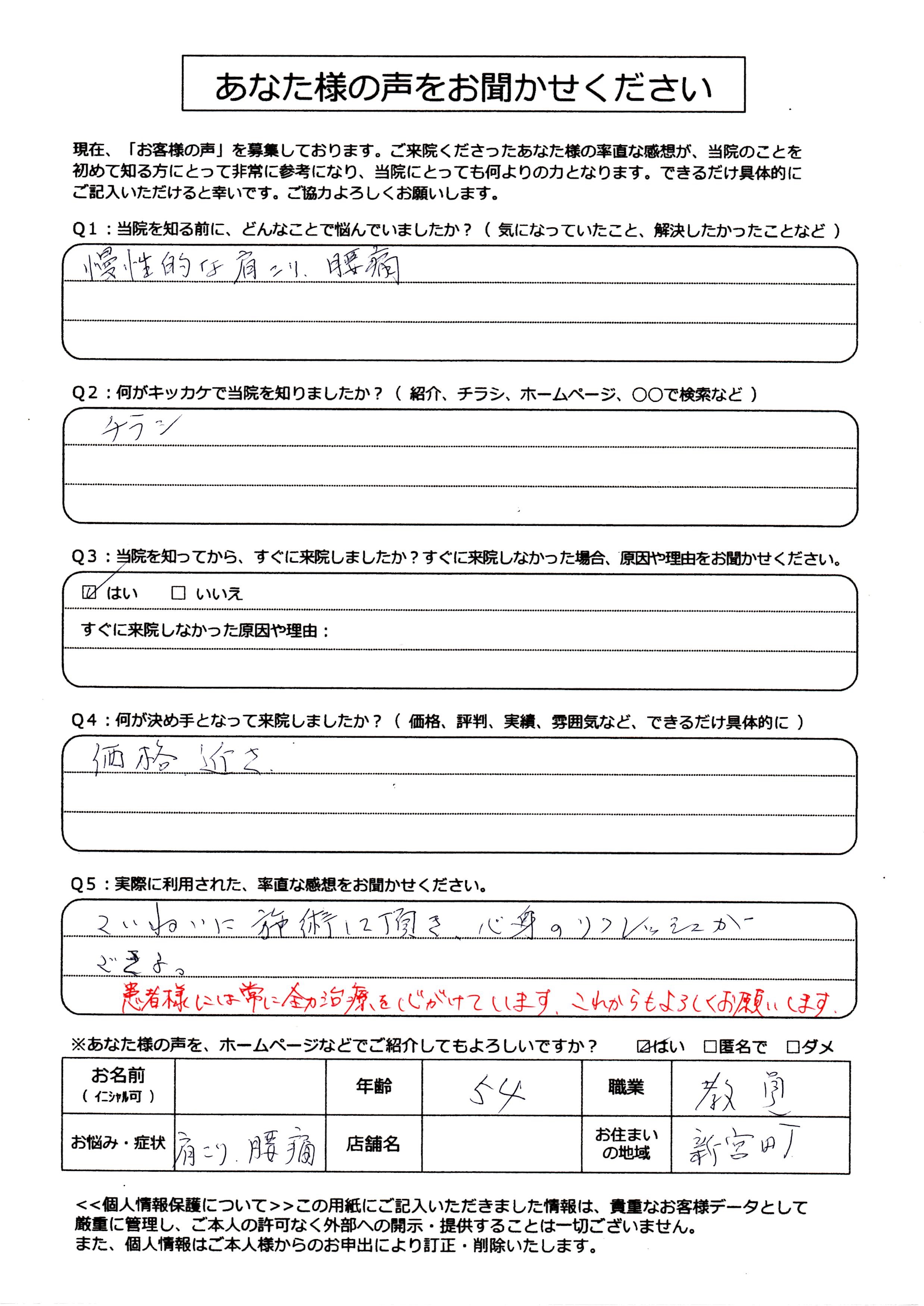 ・ていねいに施術して頂き心身のリフレッシュができる