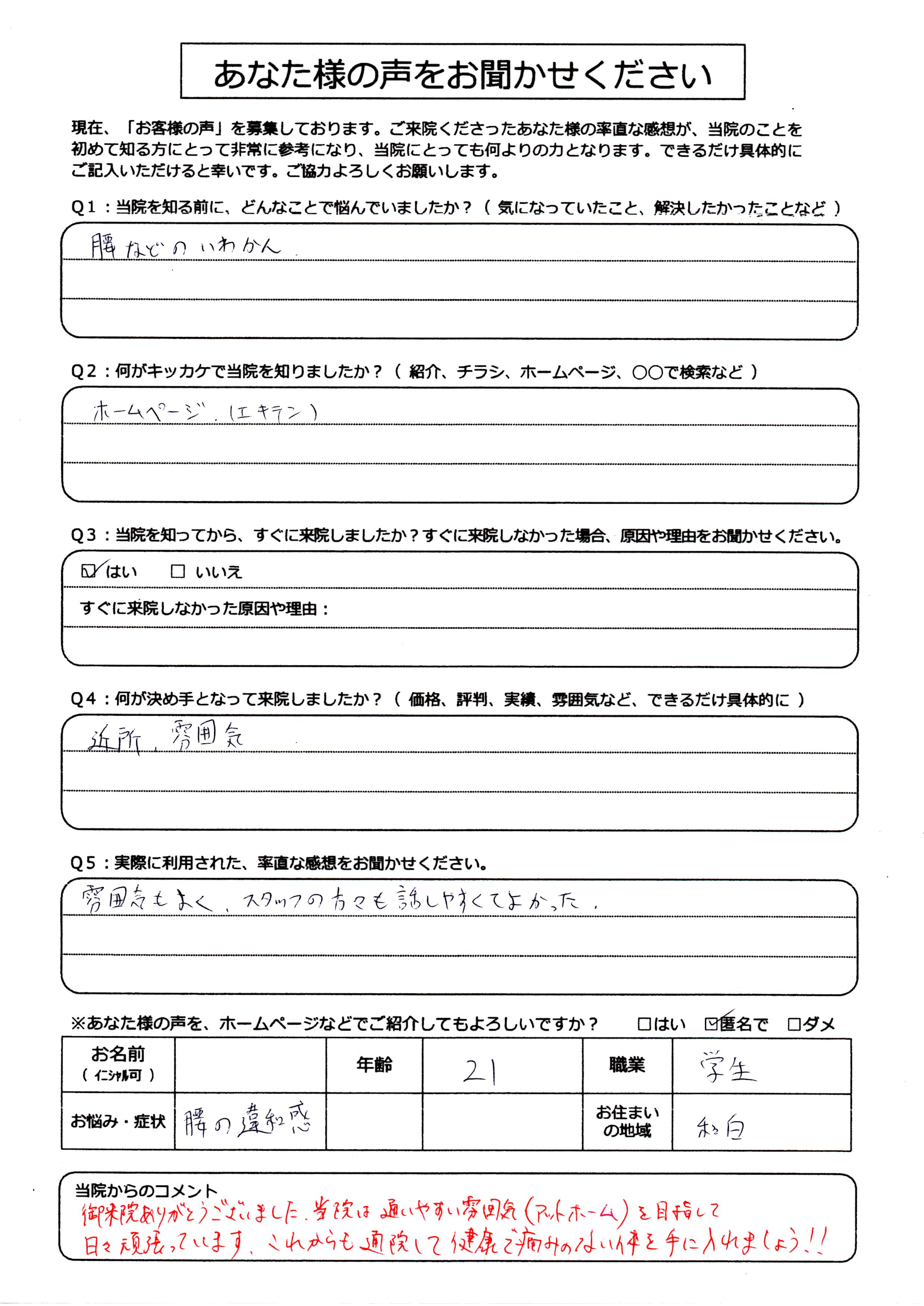 今日は患者様に頂いたアンケートの御紹介を(/ω\)