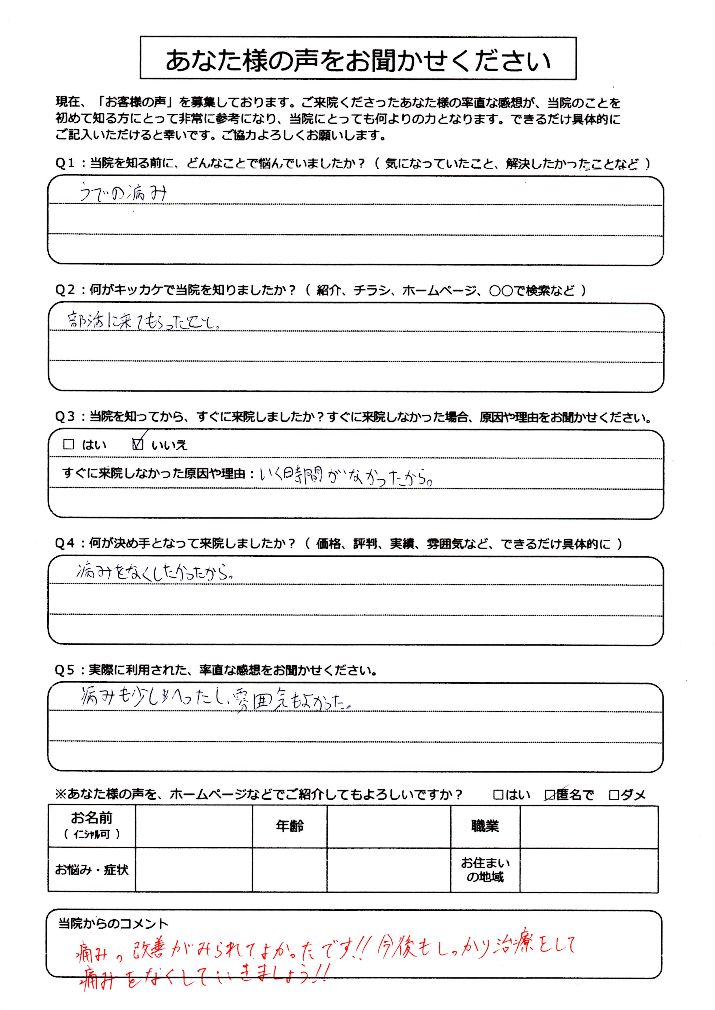 さて、早速ですが今日ご紹介させていただく患者様のアンケートはコチラです!!