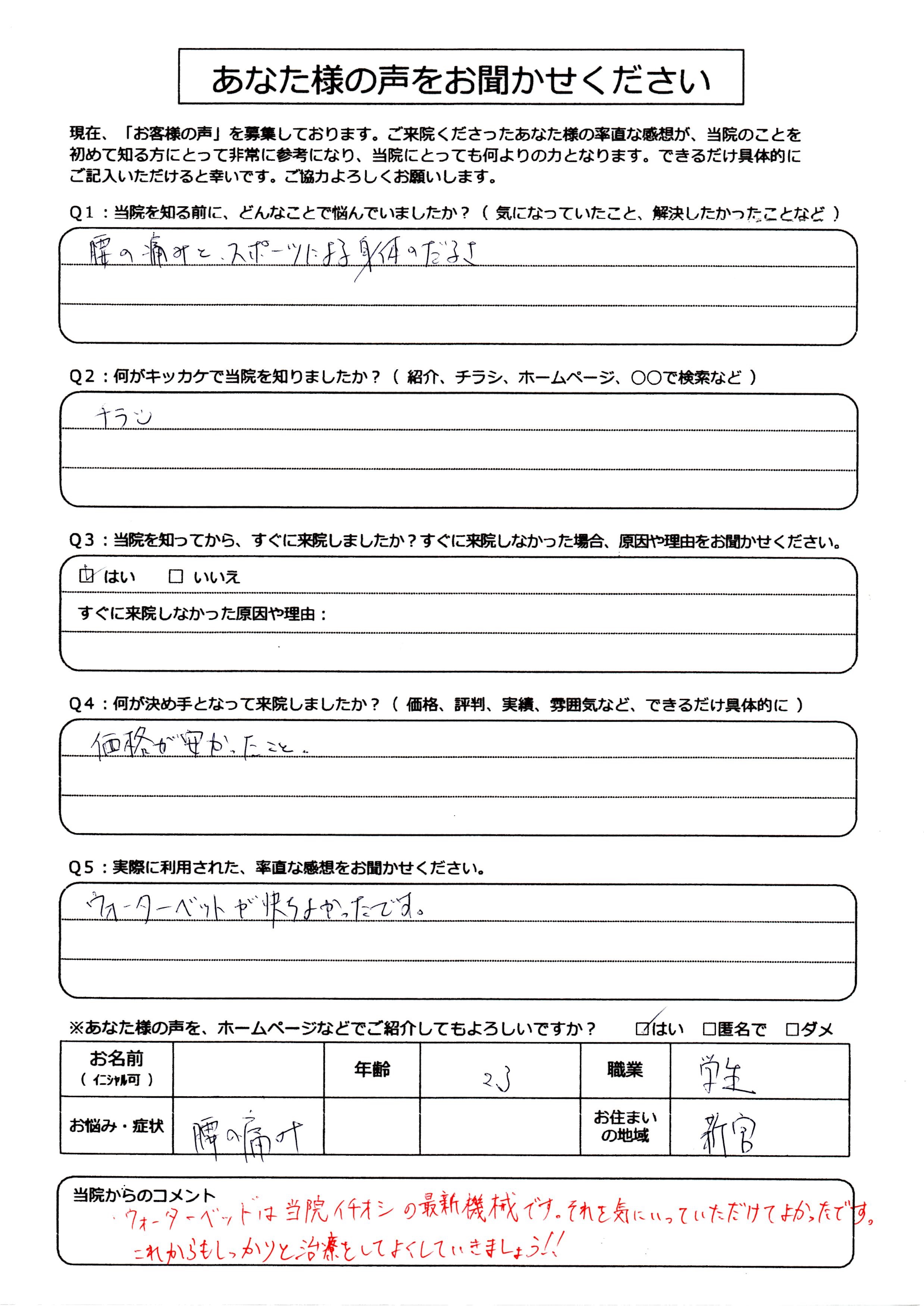 さて、今日紹介させていただく患者様のアンケートはコチラです!!