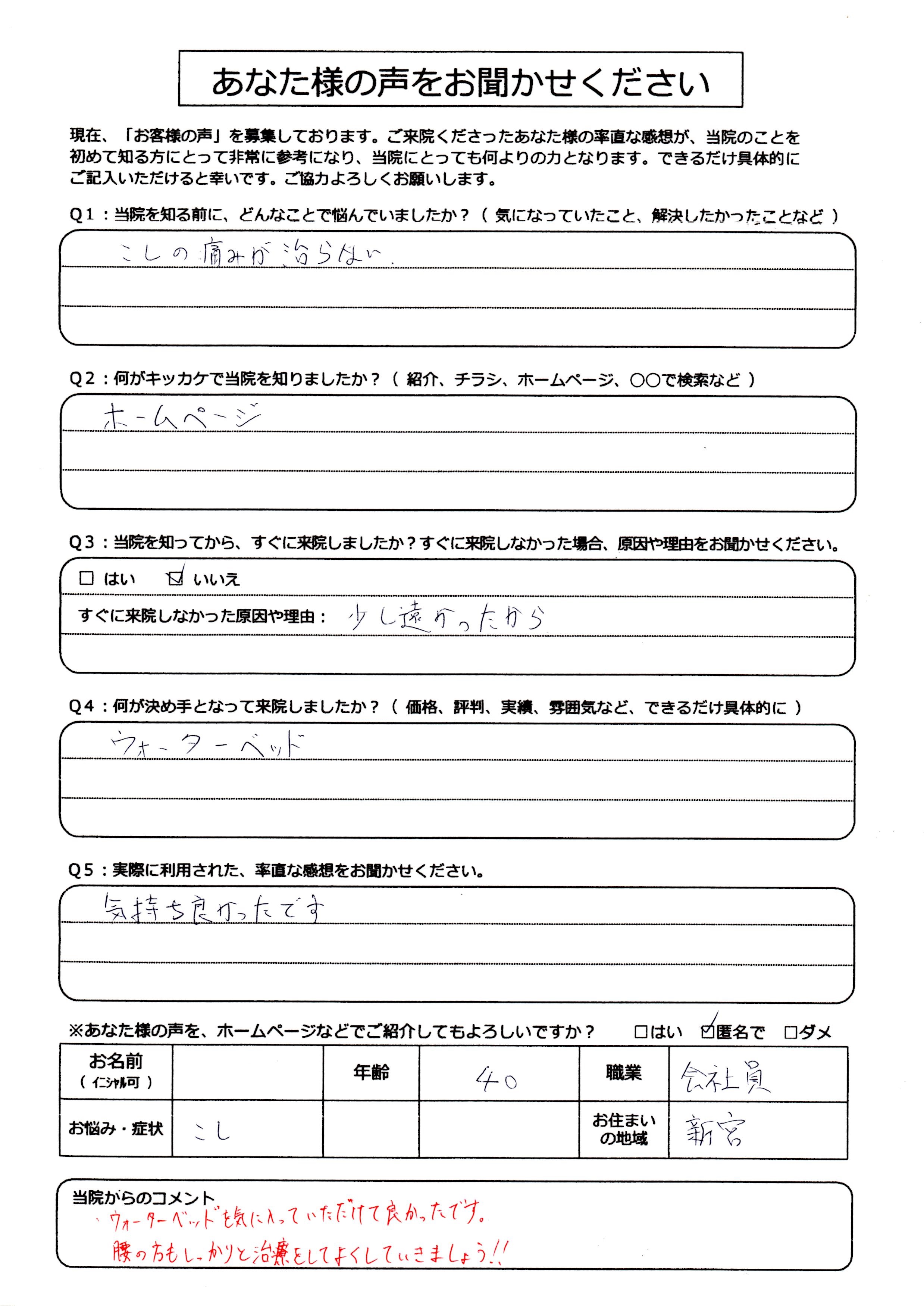 腰の痛みが治らないとお悩みの患者様が御来院!その痛み、まつもと整骨院で治しましょう!