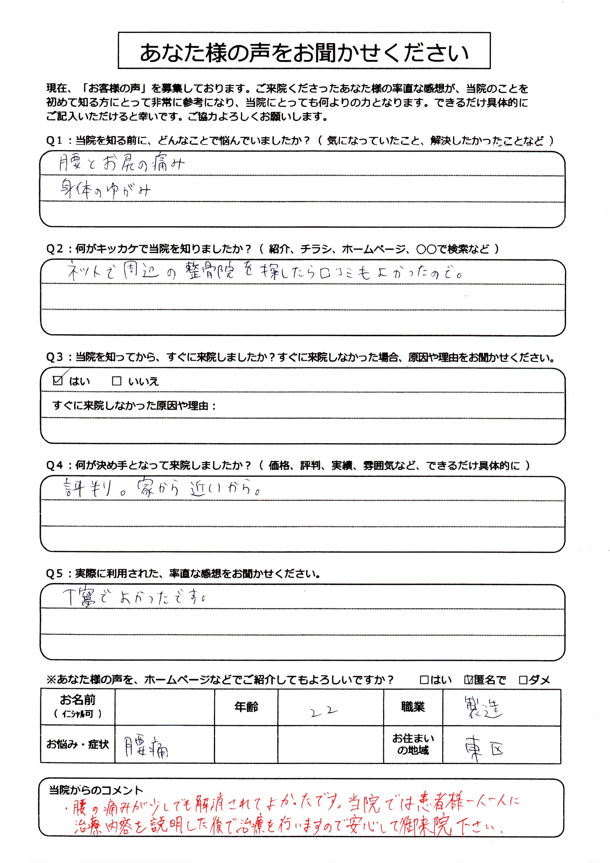 さて、早速ですが今日ご紹介させていただく患者様のアンケートはコチラです!