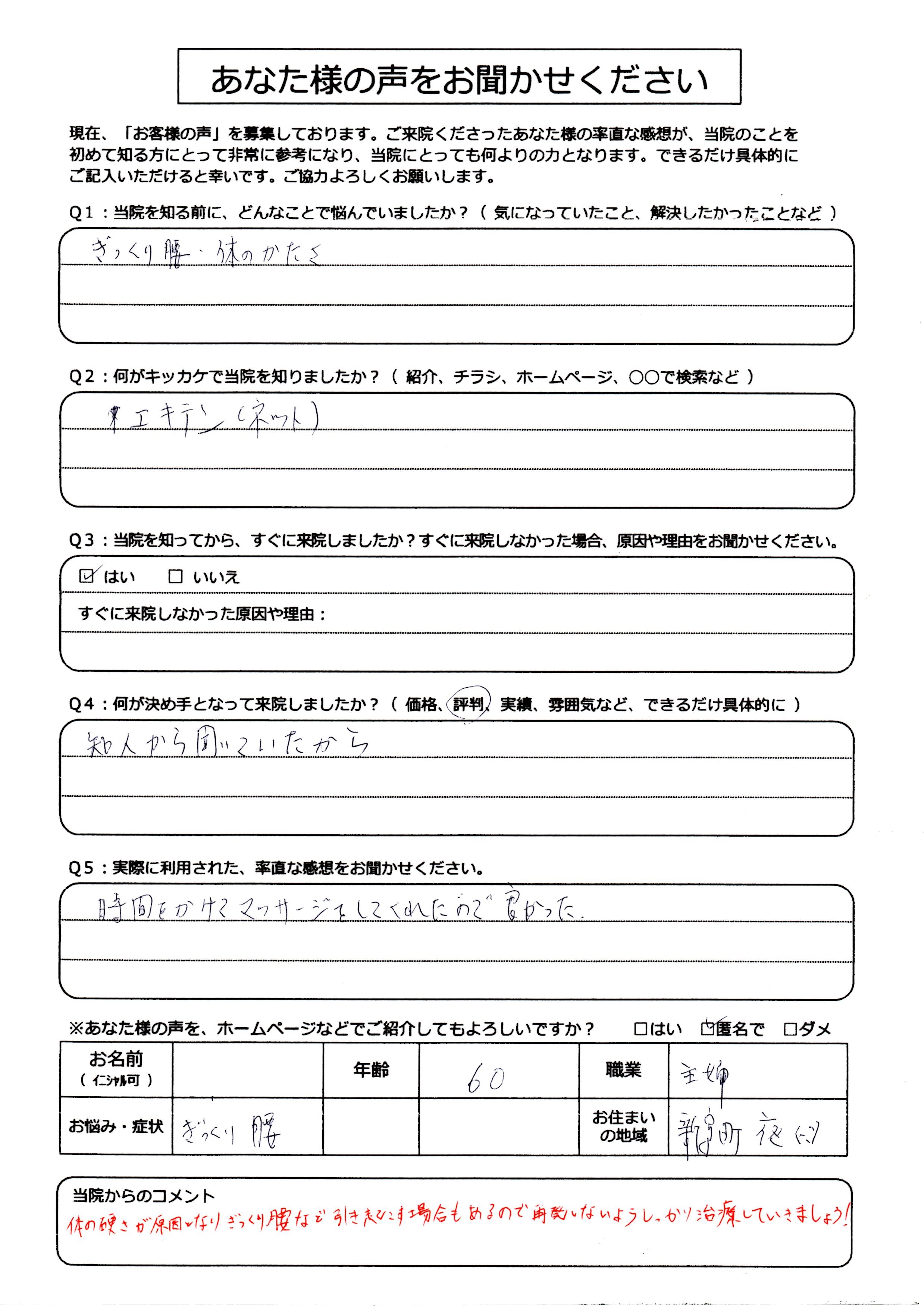 新宮町夜臼地区にお住いの方がぎっくり腰で来院されました