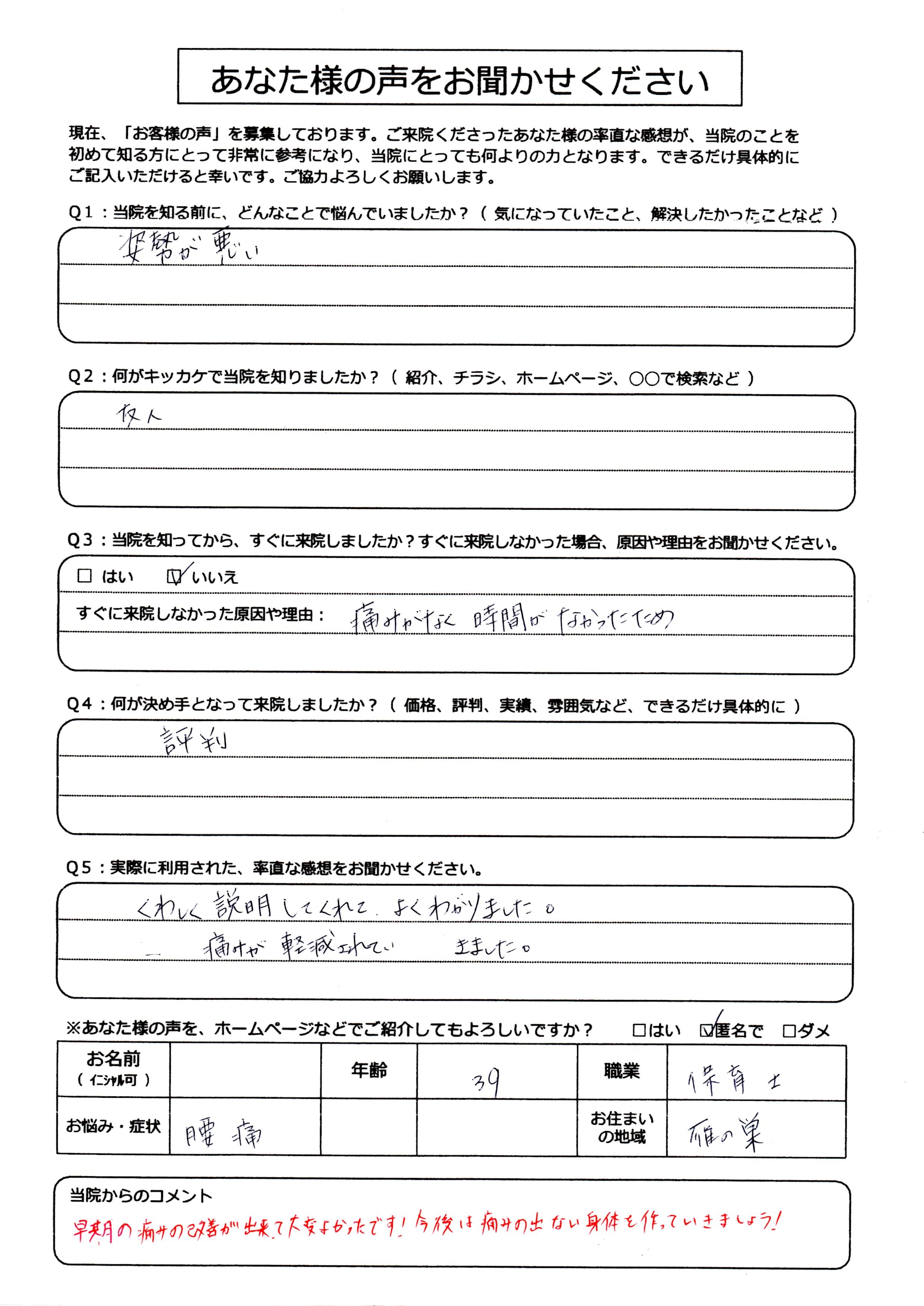 さて、スポーツの話はここまでにして今日の患者様のアンケートのご紹介をしていこうと思います。